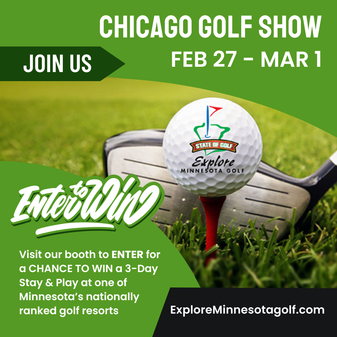 Visit Booth #811 to enter to win a Stay & Play for two at a nationally ranked Minnesota golf resort. (Value: $1,100)